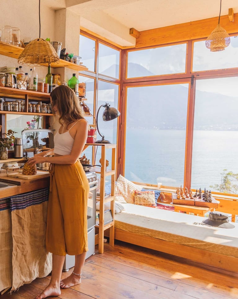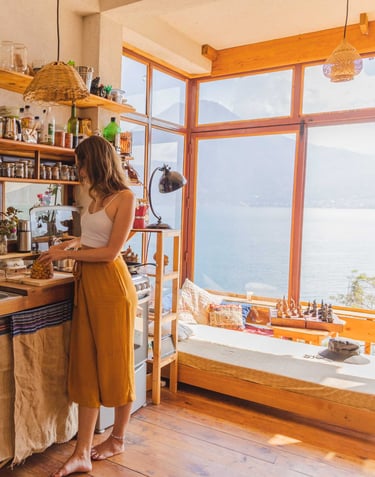 A serene lakeside retreat in San Marcos La Laguna, offering studio apartment rentals. Immerse yourself in nature with stunning lake views, beach access, and tranquil gardens.